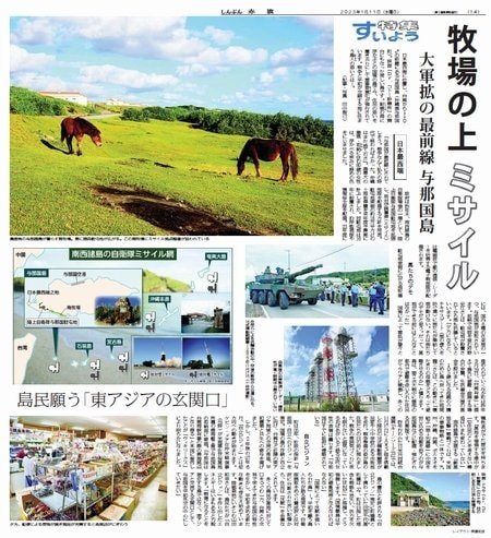日本最西端に位置し、台湾から110キロの距離にある与那国島(沖縄県与那国町)。映画「Dr.コトー診療所」の舞台にもなった美しい島です。紺碧(こんぺき)の海に浮かぶこの国境の島で今、住民の思いを置き去りにして軍事要塞(ようさい)化が強行されています。戦争と平和が交錯する地に住まう島人(しまんちゅ)の思いとは―。(記事・写真 田中智己)