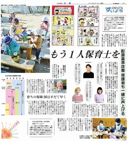 あまりにも低い保育園の職員配置基準。4~5歳児の保育士の配置基準は戦後70年以上変わっていません。「各年齢もう1人保育士を増やしてほしい」と保育士や保護者がともに声をあげています。