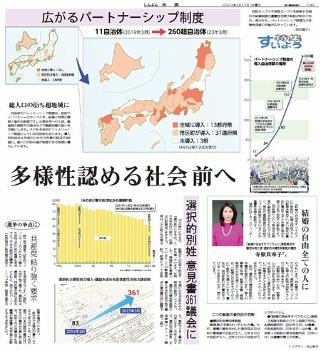 同性カップルや別姓カップルを排除する現行の結婚制度の違憲性を問う訴訟が相次ぐなか、地方から、パートナーシップ制度など多様性容認の世論が広がっています。(武田恵子)