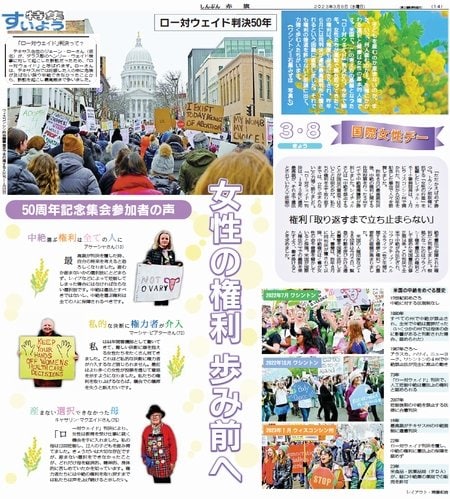 子どもを産むのか産まないのか、また、いつ、何人産むのか―。生殖にかかわる選択と健康は女性の基本的人権です。米国で、この考え方の基盤となった「ロー対ウェイド」判決から、今年で50年。女性たちが運動で勝ち取ってきたこの権利は、幾度も逆流にさらされ、昨年6月には同判決が連邦最高裁判所で覆されるという困難に直面しました。それでも権利の後退を許さないと街頭に出て、力強く歩む人たちがいます。(ワシントン=石黒みずほ 写真も)