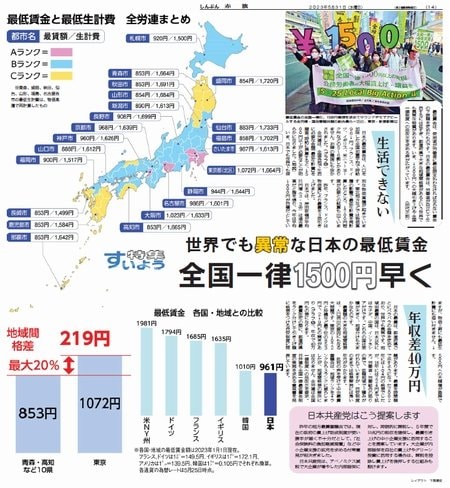 世界でも異常な特質があります。いま、1500円への大幅引き上げや全国一律制度への法改正を求める