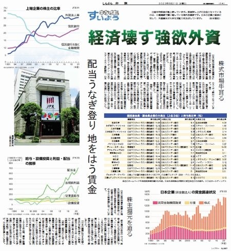 日経平均株価の大暴落は、株主の利益を最優先にする株主資本主義の危うさをまざまざと示しました。近年、日本の大企業は株主資本主義への傾斜を深めてきました。急増した2023年度の役員報酬にもそうした傾向が表れています。(佐久間亮、杉本恒如)
