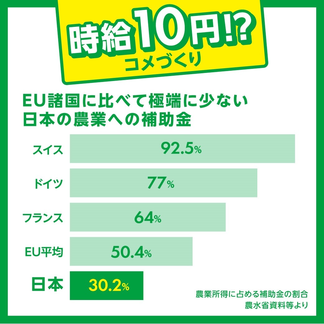コメづくりを時給換算すると2年連続で10円…農業の中心的担い手はこの20年で半減しています。根本には米国・大企業優先で輸入自由化、市場まかせを続けてきた自民党農政があります。価格保障・所得補償で農家の経営・生活を支える農政へ転換を!#比例は日本共産党