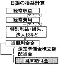 日銀は、年度ごとの事業で剰余金が出た場合、その一部を国庫納付金として国におさめます。二〇〇一年度までの決算ベースでみると、毎年一兆円前後が国の雑収入に入っています。