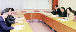 ![]() (写真)ATM撤去、簡易郵便局閉鎖問題で日本郵政公社に申し入れる右から吉川、吉井議員=18日、日本郵政公社 |