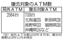 二千五百六十四台の局外ATMのうち撤去の対象になっているのは約三割の七百三十八台。そのうち六百二十四台についてはすでに設置先と「合意」したとして、病院や学校などをふくむATMの撤去が始まっています。
