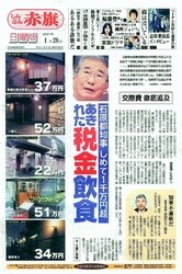 ![]() (写真)石原東京都知事の税金を使った高額飲食を報じた「赤旗」日曜版1月28 日号 |