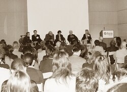 パネリストとして参加したベアテ・シロタ・ゴードンさんは、日本の憲法起草に携わり、女性の権利を書き込んだ当時の体験を織り交ぜながら、憲法九条の意義を強調。「憲法九条があったから、日本は戦後六十年間、誰一人として外国人兵士を、また自国の兵士も殺していないことを忘れてはならない」と述べ、「日本は、この平和憲法をつかって、世界の平和のリーダーになることができる」と語りました。