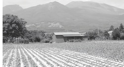 国道をそれて、小高い畑地に出ると、通常の農家のビニールハウスの倍以上の体積がありそうなガラスばりの角張ったハウスがいくつも見えてきました。