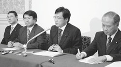 会見に先立ち、参院議院運営委員会理事会で自民、公明の与党に民主と社民の決議案を提示しました。