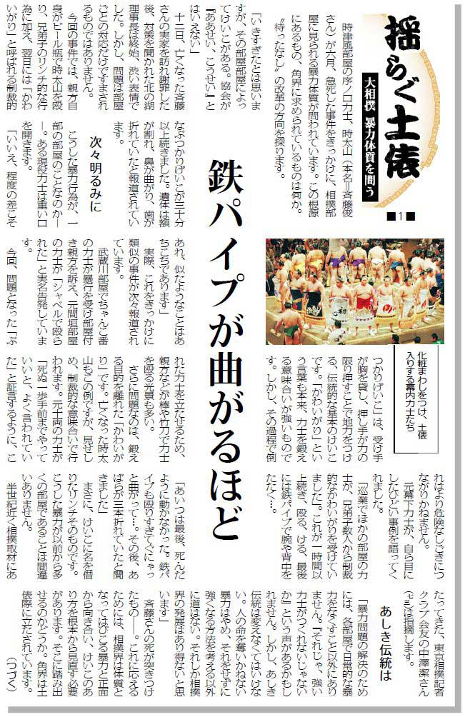 大相撲で起きた力士死亡事件でも、「『赤旗』の相撲報道は群を抜いている」「相撲界の問題点を指摘されている点に共感します」など、三面連載「揺らぐ土俵」をはじめ、一連の報道に大きな反響が寄せられています。