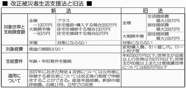 改正法には、被災者の願いだった住宅本体への支援が盛り込まれました。支援金の算出方法も、積み増し式から「定額渡しきり方式」となり、煩雑(はんざつ)な事務手続きが簡素化されます。