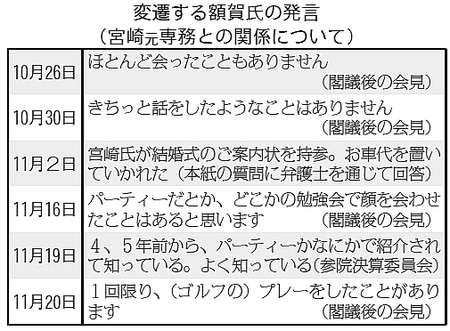 「(宮崎容疑者との宴席にいたのは)久間先生と額賀先生ではなかったかと思う」「額賀先生とのあれ(宴席)ははっきり覚えてまして」