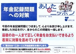 ![]() (写真)↑これが証拠 ▲年金記録問題を報じる政府広報「あしたのニッポン」7月号 |