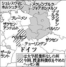 ところが、〇五年に連邦憲法裁判所が、学費徴収を全国一律に禁じる法律を無効とし、授業料を徴収するかどうかは十六の州・特別市の判断に任されました。このため、保守のキリスト教民主・社会同盟(CDU・CSU)や自由市場に重きを置く自由民主党(FDP)が与党の州は〇六、〇七年に相次いで徴収を開始しました。