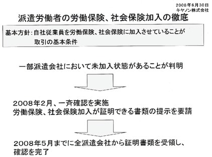 偽装請負でも、社会保険未加入の問題でも、キヤノンとして一定の対応をしてきたことがあきらかになりました。