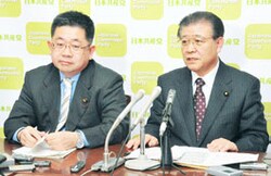![]() (写真)記者会見する市田忠義書記局長(右)、小池晃政策委員長=9日、国会内 |