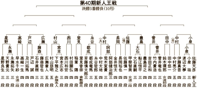 ベスト16の顔ぶれは、村山慈明五段(24)と糸谷哲郎五段(20)の元新人王をはじめ、前期ベスト4の中村太地四段(20)、現在八連勝中の豊島将之四段(18)ら、注目の若手棋士がそろっています。