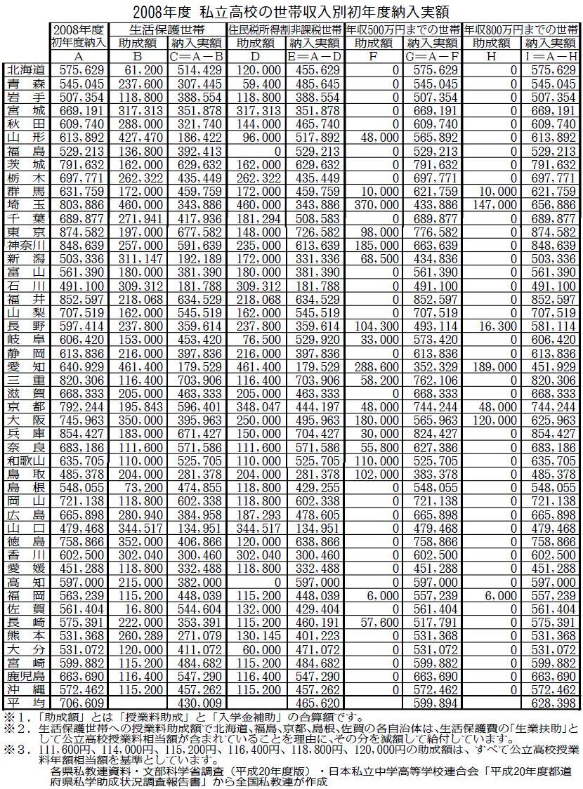 授業料助成は、生活保護と家計急変世帯を除いて全額各県負担であるため、県の財政や関係者の運動によって助成制度に大きな差が生じています。