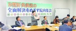 ![]() (写真)B型肝炎訴訟の全面解決をめざす院内集会=10月15日 |