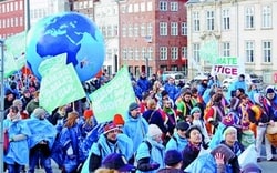 デンマーク・コペンハーゲンで開かれている国連気候変動枠組み条約第15回締約国会議(COP15)で法的拘束力ある合意を求めて、世界各地の環境NGOによる「グローバルアクションデー」が12日、世界100カ国以上で取り組まれました。日本では北海道から沖縄まで約20カ所で、「温暖化をとめるCOP15の成功を!」と共同行動が広がりました。