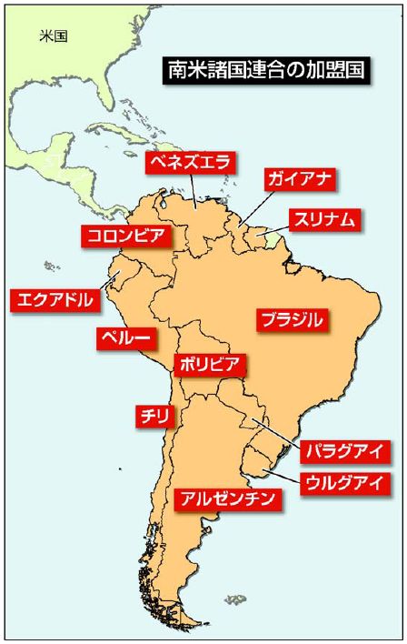 いま中南米諸国は米国の影響を受けるOASに頼らず、米国抜きで中南米独自の地域統合を模索しています。その流れのなかで、2008年5月に誕生したのが、南米12カ国でつくる平和共同体「南米諸国連合」(UNASUR)です。設立条約は、主権平等に基づく多極世界、核兵器のない世界を目標とし、統合の原則に、主権尊重、領土保全、民族自決権などを挙げました。