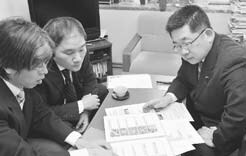 ![]() (写真)小池政策委員長(右)に歯科技工士問題で要請する「みんなの歯科ネットワーク」の(左へ)大塚さんと小林さん=24日、参院議員会館 |