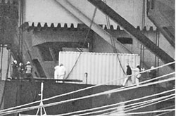![]() (写真)原子力空母ジョージ・ワシントンからコンテナを搬出する白服の作業員=16日、米海軍横須賀基地 |