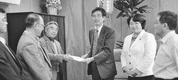 ![]() (写真)リンゴ対策を農水省の篠原副大臣(右から3人目)に要請する青森県農民連の代表。右から2人目は高橋衆院議員=9日、農水省 |