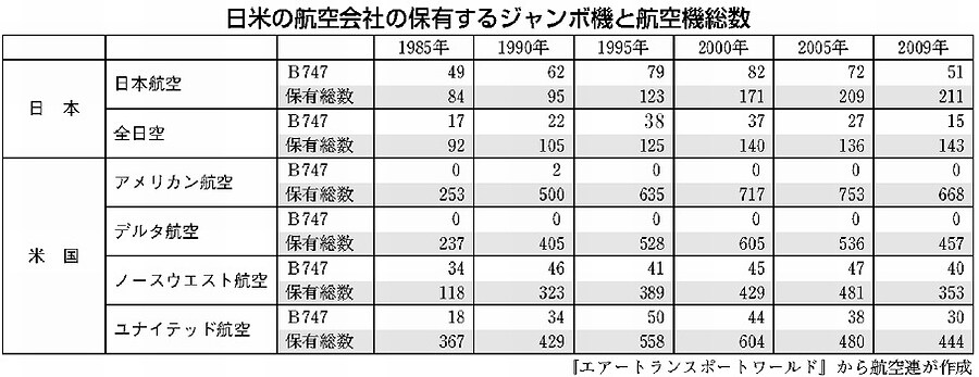 乗客の少ない路線にまでジャンボ機を使ってもなお十分に活用できず、92年に4機を米国の砂漠に寝かせていたのが話題になりました。2009年は10機も余剰を抱えていました。