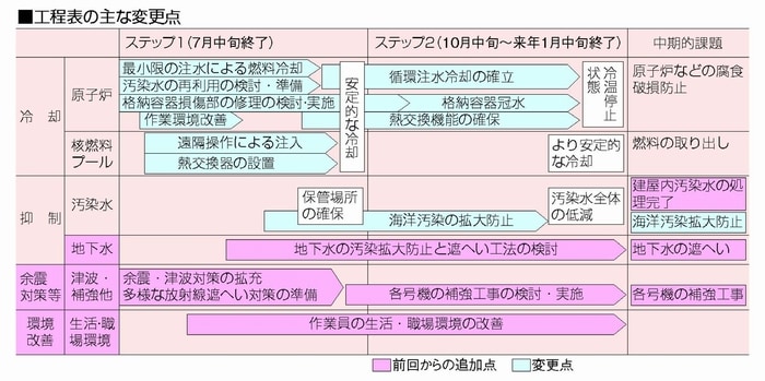 東京電力が17日に発表した、福島第1原発事故の収束に向けた課題や目標を示した「工程表」改訂版。原子炉冷却の方法は見直したものの、目標達成時期については変更しませんでした。しかし、達成の裏づけはどうか、さまざまな課題がみえてきます。