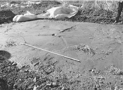 ![]() (写真)液状化で噴砂した豊洲市場予定地の土壌=3月、東京都江東区(日本共産党都議団撮影) |