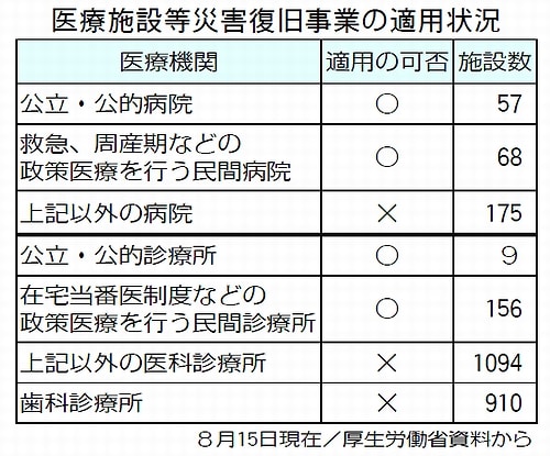 国は2011年度第1次補正予算に医療機関への「災害復旧費補助金」を盛り込み、病院125件、医科診療所165件の申請が出されました。しかし全壊した医療機関は一つも含まれていません。