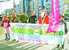24日は、消費税法が成立してから23年になり、消費税廃止各界連絡会は、「怒りのいっせい宣伝行動」を全国で展開しました。
