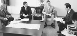 ![]() (写真)関西経済連合会と懇談する(左3人目から左に)清水、杤原、勝田の各氏=17日、大阪市 |