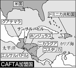 中米自由貿易協定 米国が中米5カ国と2004年5月に調印した自由貿易協定で、関税の撤廃や大幅削減などが柱です。その後、ドミニカ共和国が加わりました。