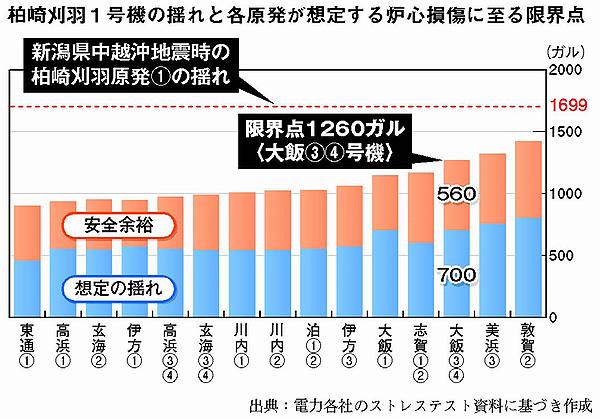 井上氏は、2007年の中越沖地震の際、東京電力柏崎刈羽原発では基準地震動(450ガル)の約4倍もの1699ガルの揺れが発生し、3700件を超える事故・故障が発生したことを指摘。再稼働を強行した大飯原発3、4号機でも限界点は1260ガルにすぎず、ほとんどの原発で、柏崎刈羽原発が受けた中越沖地震規模の揺れがくれば炉心溶融にいたる限界点を超えてしまうと迫りました。