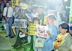 日本平和委員会のメンバーで「誘われて参加した」という横浜市の女性(32)は「墜落してばかりいるオスプレイがなぜ安全か、なぜ試験飛行するのか、なぜ県民大会まで開いて反対している沖縄に配備するのか、まったくわからない。ここに来ることが飛ばさない一歩になると思いました」と語っていました。