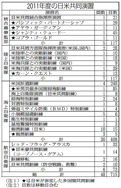 毎年米空軍と航空自衛隊が米領グアムで行っているコープノース・グアム(12年2月)は、10年度よりも訓練日数こそ減ったものの、豪空軍が正式に初参加。海では、これまで国内周辺で行っていた日米豪共同訓練を初めて南シナ海に場所を移して行いました(11年7月)。陸でも日米共同方面隊指揮所演習(12年1月)に豪陸軍が初めてオブザーバー参加しました。