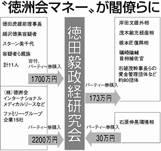 ちなみに、石原伸晃環境相が30万円分、徳田氏のパーティー券を購入しています。