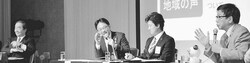 ![]() (写真)パネルディスカッションで発言する大門実紀史議員(右端)=22日、北海道苫小牧市 |
