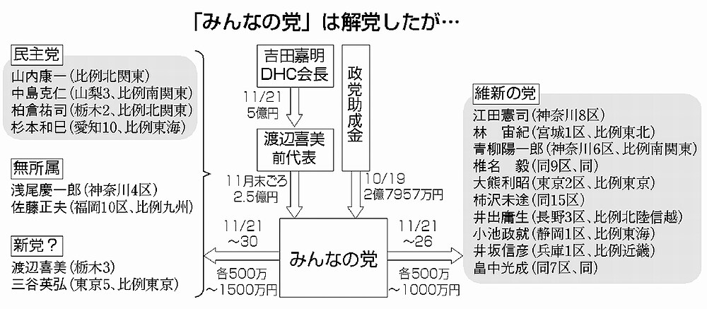 みんな⇒「維新」「民主」などに転出議員 DHCマネーどうなった