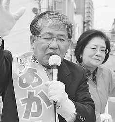 名護市辺野古の新基地建設阻止を掲げる翁長雄志知事を支えるため、何としても勝利を―。自民党候補と大激戦・大接戦になっている衆院沖縄1区で、「オール沖縄」を代表するあかみね政賢候補(66)を押し上げようと、支援の輪が広がっています。12日は、城間幹子那覇市長が約2時間にわたって宣伝カーに乗り、同市内で支持を呼びかけました。