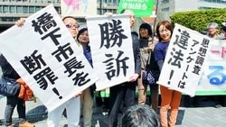 橋下徹大阪市長による市職員への憲法違反の「思想調査アンケート」(市職員への労使関係アンケート調査)で「精神的苦痛をうけた」として、職員59人が市に1900万円余りの賠償を求めた裁判の判決が30日、大阪地裁でありました。中垣内健治裁判長は、アンケートの一部を違憲と断定し、大阪市に約35万円の賠償を命じました。