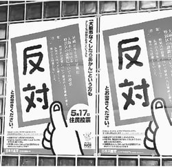![]() (写真)「大阪市なくしたらあかん」という方も、少しでも「疑問がある」という方も、「反対」とお書きください―とよびかける日本共産党のポスター=大阪市 |