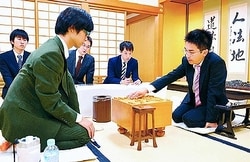 ![]() (写真)終局後検討する菅井六段(右)と大橋三段=14日、大阪市・関西将棋会館(峯松進撮影) |