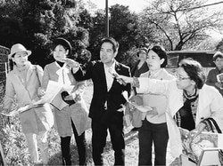 同市内の不二ガ丘地区の地下には亜炭鉱跡が広がっており、陥没を心配する住民と調査団が懇談しました。計画に反対する女性は、ボーリング調査の説明をしに来たJR職員が「国が要請したものだから」と強弁していたと語りました。議員団は「住民が声を上げることが国会での追及の力になる」と激励しました。