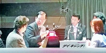 ![]() (写真)TBSラジオ番組「荒川強啓デイ・キャッチ!」に出演する志位委員長(左から2人目)=東京・赤坂のTBS放送センター |