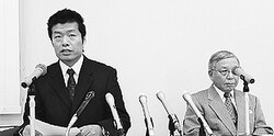 ![]() (写真)会見する坂倉正紀さんの兄、孝紀さん(左)と田川弁護士=3日、山口県弁護士会館 |