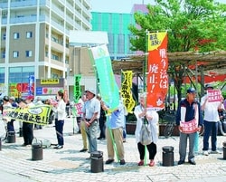 ![]() (写真)「青森の青年・自衛隊を戦場に送らせない」と訴え続けている「戦争いやだ、憲法まもれ!県民の会」のメンバーら=青森市 |